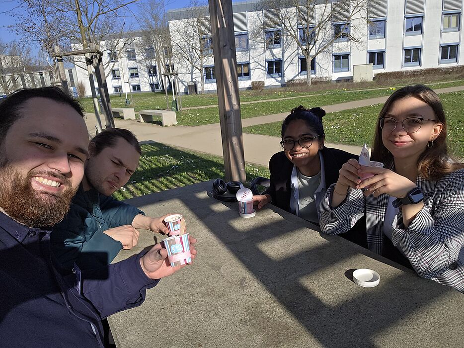 After the successful presentation of all of our scientists' contributions, there was time to cool down at lunchtime with milk ice cream of various flavours, from rice pudding to spaghetti ice cream, in view of the continuing fantastic weather.