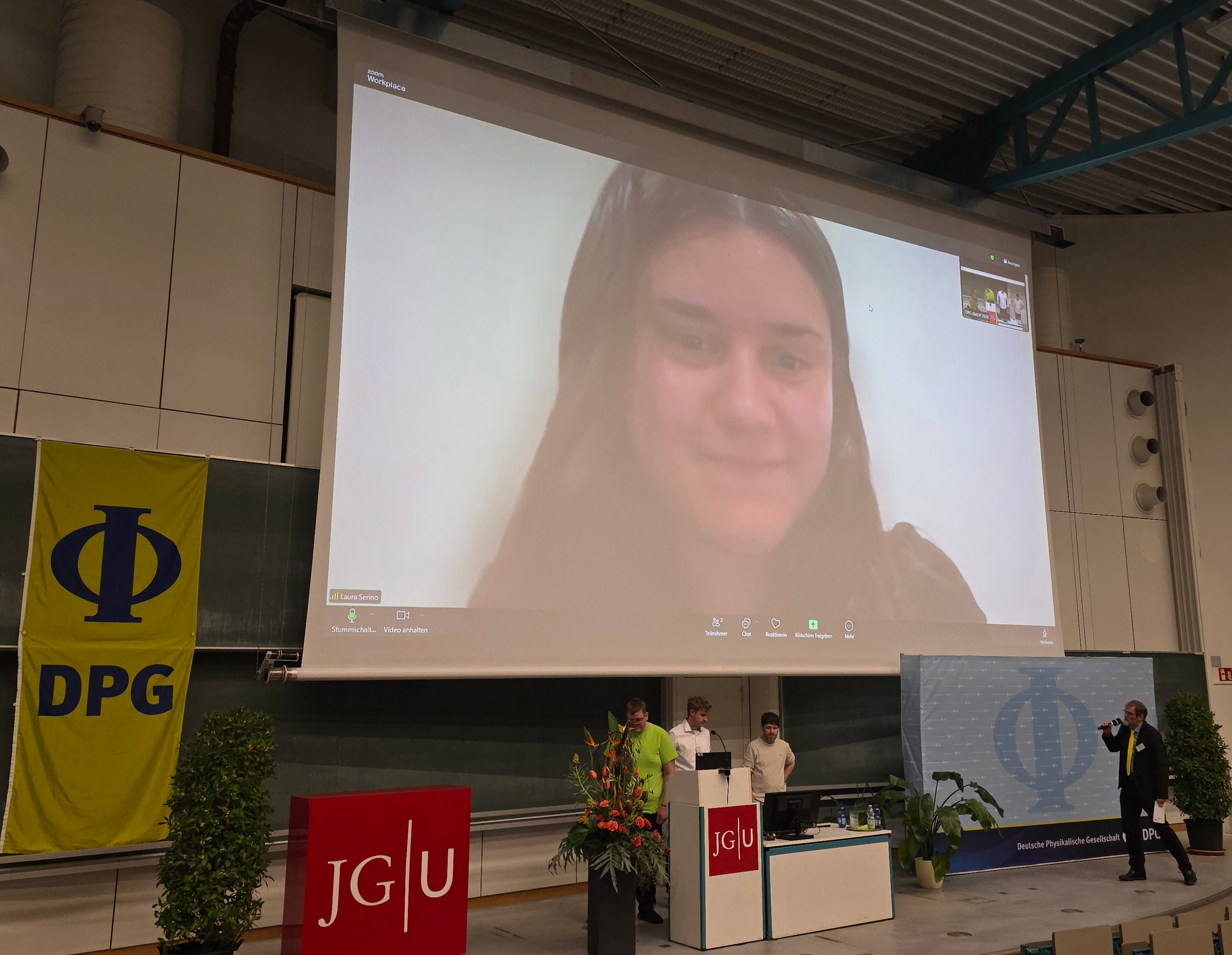 Laura Serino was particularly honoured to be nominated for the best doctoral dissertation in the SAMOP sections. With her outstanding thesis on "Harnessing time-frequency qudits using integrated nonlinear processes", Laura Serino secured a place in the final for the award of this prestigious prize. A nomination for this prize alone is considered an extraordinary scientific honour internationally. In her lecture on Monday (02.03.2026), she vividly presented a scalable experimental platform that makes it possible to flexibly generate, manipulate and precisely measure high-dimensional time-frequency quantum states, and was rewarded with thunderous