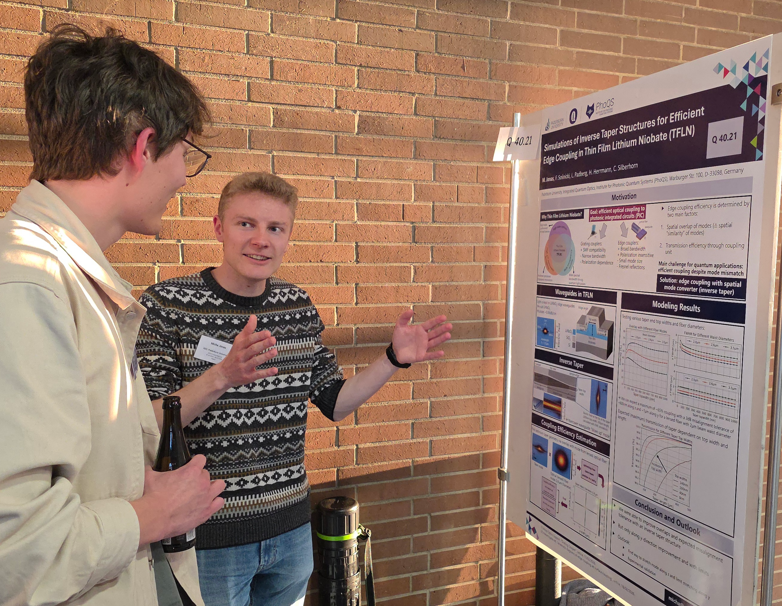 On Wednesday (04.03.2026) it was Micha Jonas' turn to share his poster with the scientific public. Based on precise explanations of his simulated progress in waveguide coupling on the TFLN platform under the title "Simulations of inverse taper structures for efficient edge coupling in TFLN", he also had numerous discussions with other researchers.