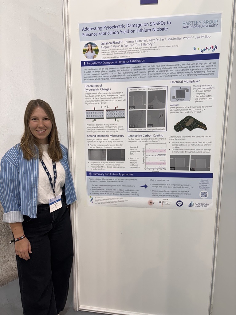 - Johanna Biendl will present a poster with the title “Addressing Pyroelectric Damage on SNSPDs to Enhance Detector Yield on Lithium Niobate”