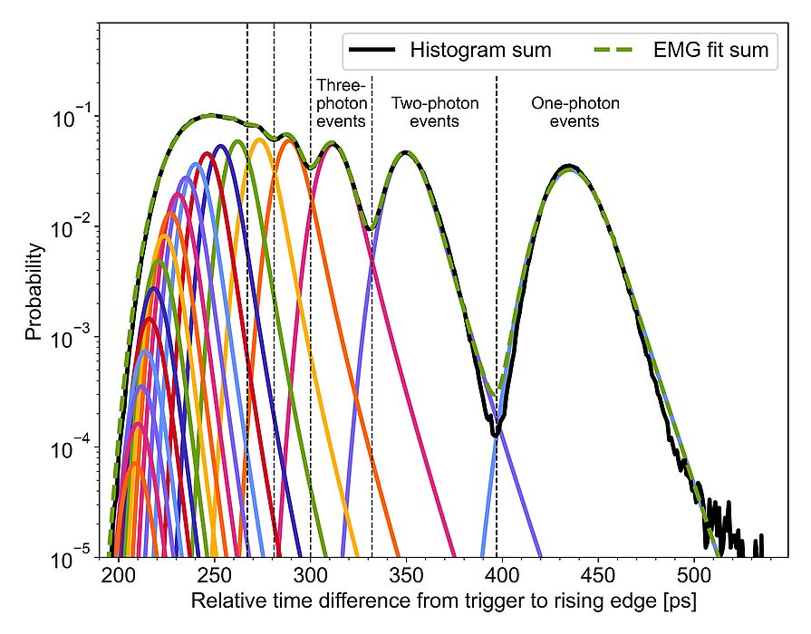 Unsere Gruppe hat gemeinsam mit der Integrierte Quantenoptik Gruppe an einer neuen Veröffentlichung in der Fachzeitschrift „APL Quantum“ gearbeitet. Der Artikel von Timon Schapeler analysiert die Zuweisung von Photonenzahlen durch präzise Ankunftszeitmessungen von Lichtpulsen mit einem einzelnen supraleitenden Nanodraht-Einzelphotonen-Detektor (SNSPD) und geht genauer auf Wahrscheinlichkeiten der Falschzuweisung mit verschiedenen Modellen ein. Dies ist unteranderem wichtig für die Entwicklung von Detektoren mit Photonenzahlauflösung und für Anwendungen wie z. B. bei der Entwicklung von Einzelphotonenquellen basierend auf parametrischer Fluoreszenz.
